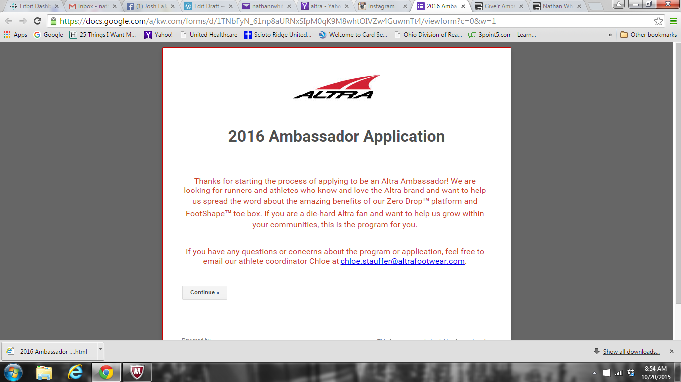 So this morning I took a shot at becoming a brand ambassador for Altra. I was a fairly easy application with lots of questions as to why you want to become a Ambassador for their brand.